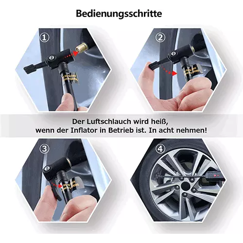 Laut Hersteller kann sich der Luftschlauch der Akku-Luftpumpe bei längerem Betrieb aufheizen. Deshalb sollten Sie achtsam mit dem Gerät umgehen.